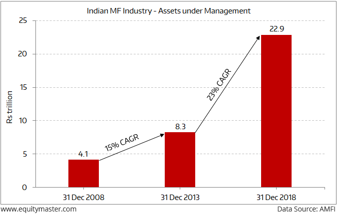 Indian Assetshas grown investment under different AMCs in last 10 years. It literally sets in motion a series of new chances, such as entry of more and more retail investors.